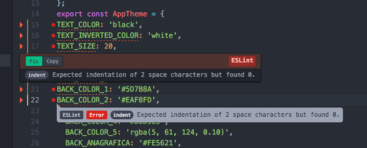 I am quite confused as the error message is not that descriptive. Install eslint and set of eslint rules to the project. 13/5/2016 · easiest fix for me was to just to remove the eslint dependencies from package.json and remove the eslint packages from the node modules folder, change eslint config file so it doesn't use any plugins (make sure it extends recommended only). Be sure to check out the plethora of rules that eslint has available. On save, lines containing linting errors will be highlighted in the gutter... On save, lines containing linting errors will be highlighted in the gutter.